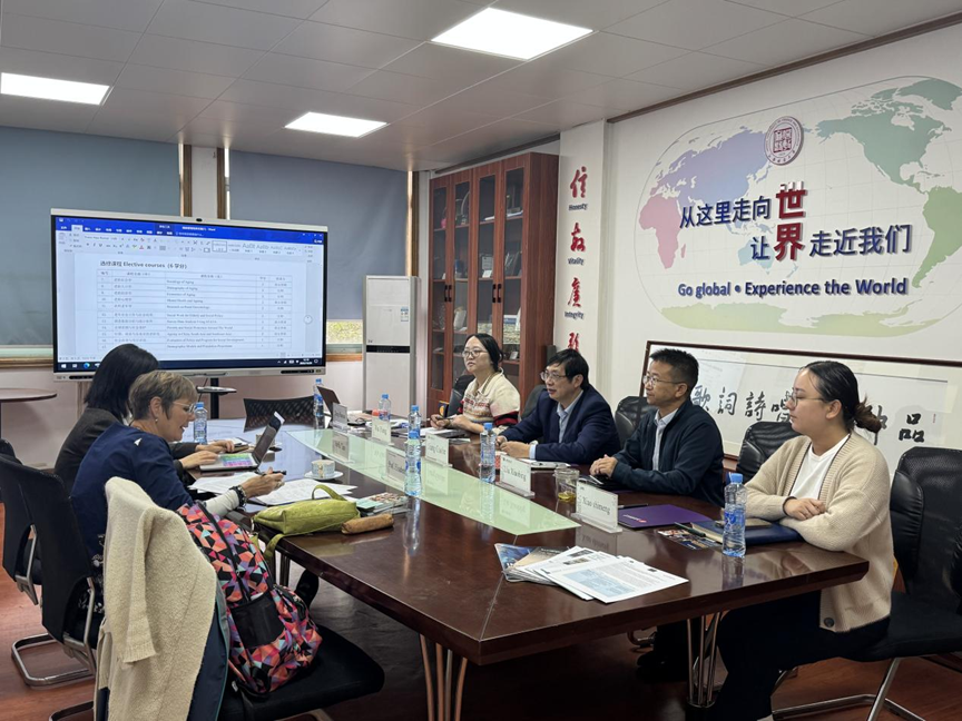 此外,双方就推进学生交流项目、深化科研协作等议题展开研讨。我校太阳城娱乐 代表向在场师生介绍了参与国际学术交流的流程与学习途径,鼓励学生积极拓展国际视野。南安普顿大学代表则分享了该校老年学专业的学习体验与就业前景,详细介绍了全球老龄化相关专业的设置理念、入学标准、课程体系及发展方向,系统梳理了老年学专业的核心知识框架,呈现了学科的全景视野。双方达成初步共识,计划在师生互访与学术合作等领域开展务实合作,共同夯实学生在跨文化环境中的学术基础,拓展其全球视野。