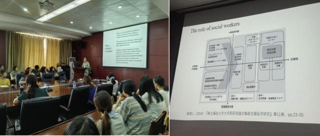 课堂上,黄教授采用案例研讨、情景模拟等启发性教学方式,引导师生就“城市化对水生态系统的影响”“社工在气候变动中的角色”“社工在防灾救灾中的任务”等议题展开深度讨论。我院师生与黄教授互动交流,课堂氛围热烈而有序,从而完成了一场跨越国界的知识共享与学术对话,拓展了我院师生的国际视野,培育了师生们社会学、社会工作与环境学的学术融合研究视角。